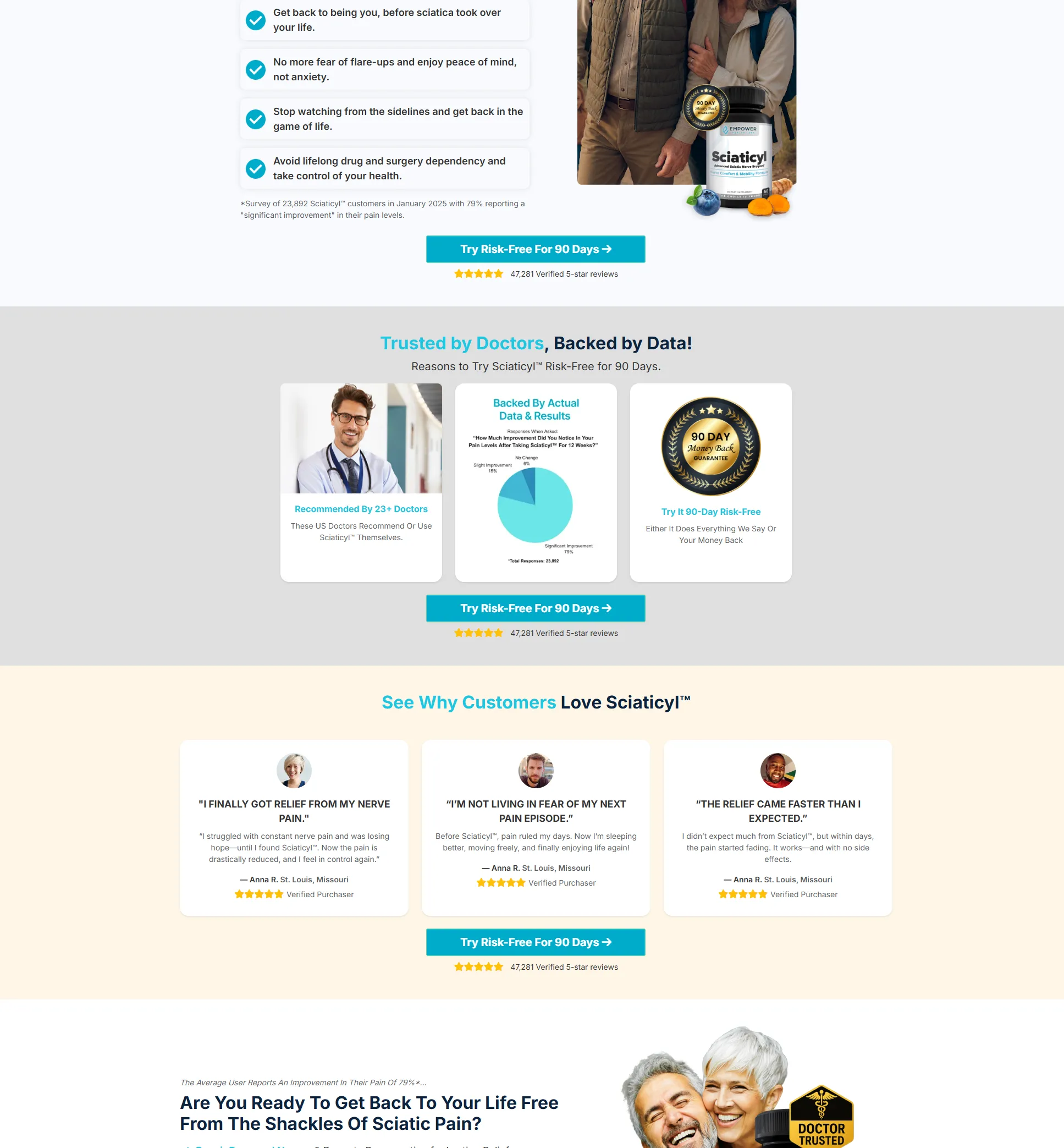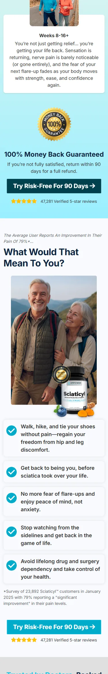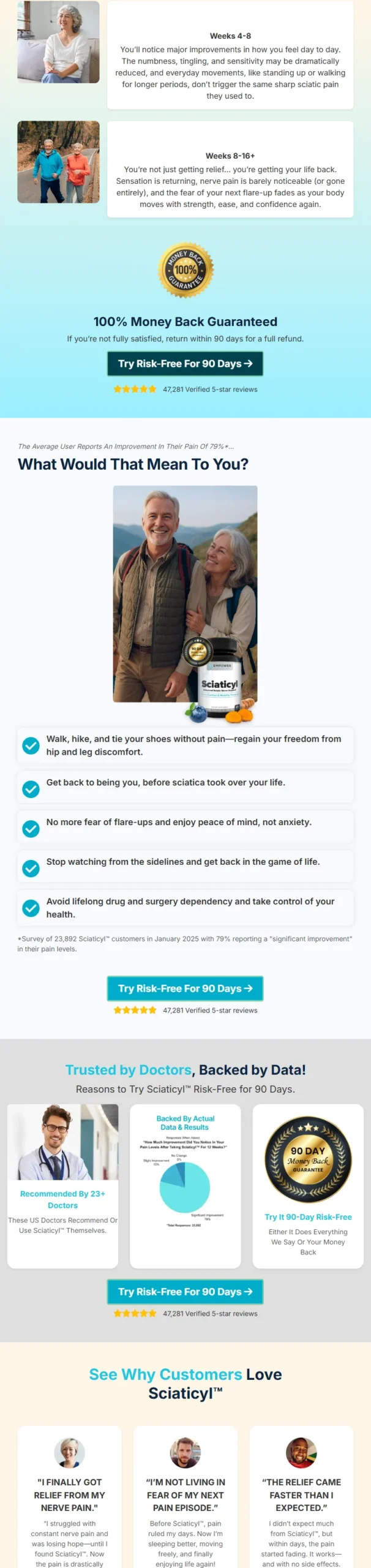 “Before Sciaticyl™, my days revolved around pain and worrying when the next flare-up would hit. My wife says I’m like a different person now—and I feel it too. I’m sleeping better, moving easier, and enjoying things I used to avoid. It feels amazing to not live in constant discomfort anymore.”