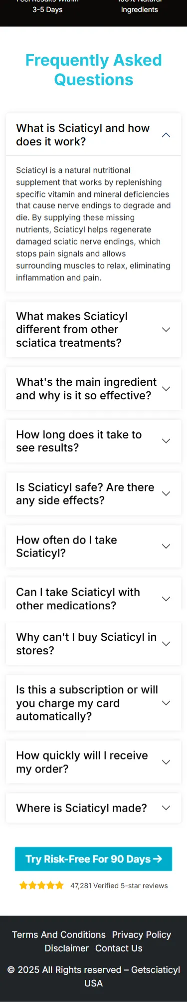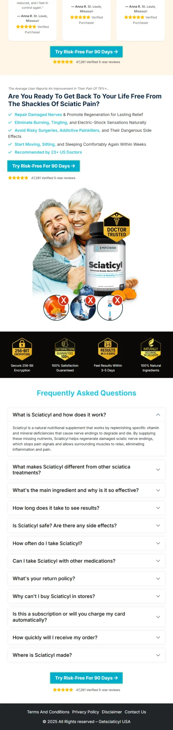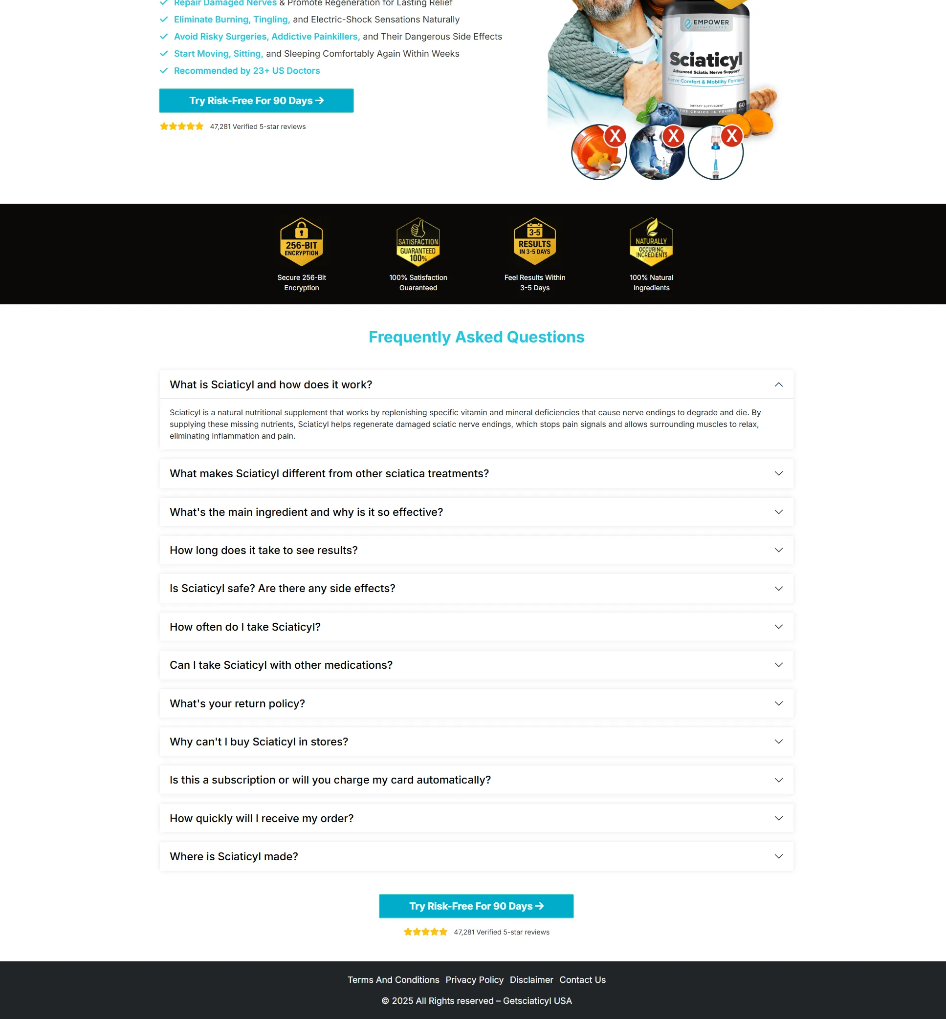 Sciaticyl comes with a 100% money-back guarantee, giving you peace of mind with your purchase. If you are not fully satisfied with the results, you can contact the company within 90 days of your order for a full refund—no questions asked.