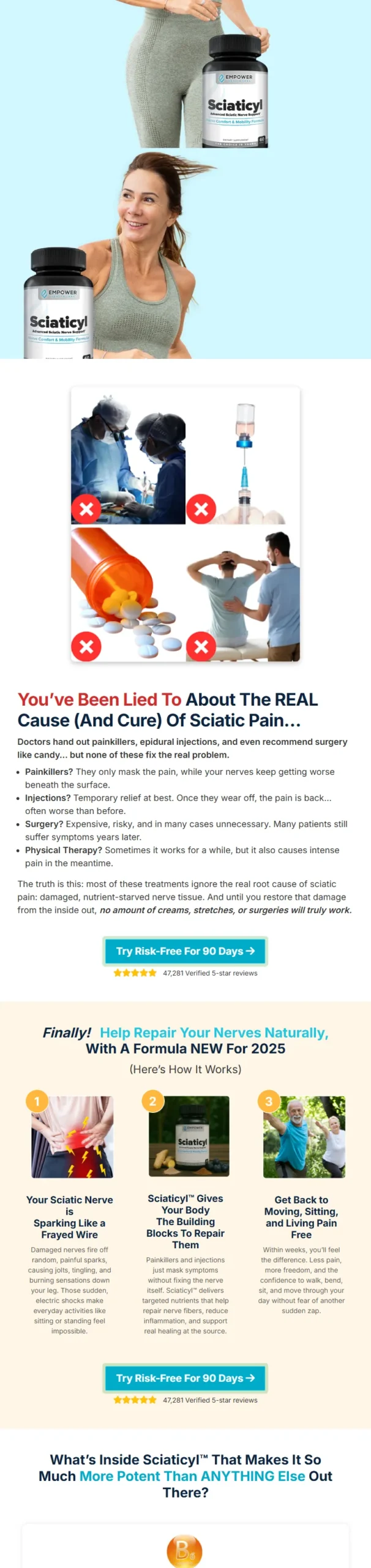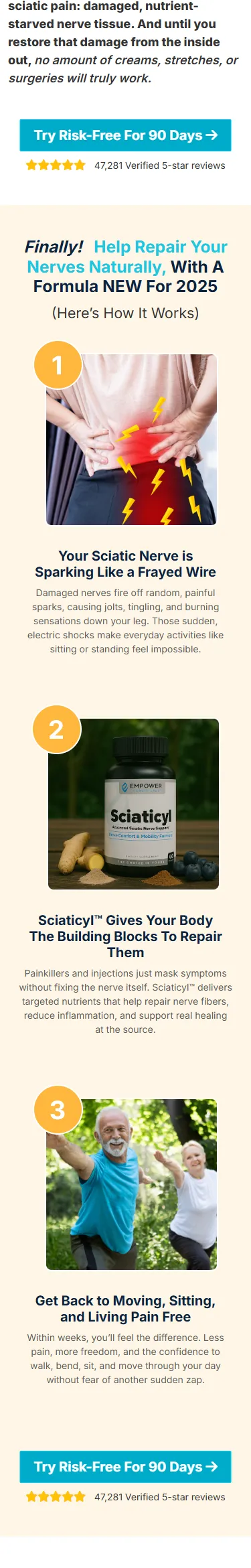 Sciaticyl is a natural supplement that supports nerve health, reduces sciatica pain, and improves mobility for a more comfortable, active life.