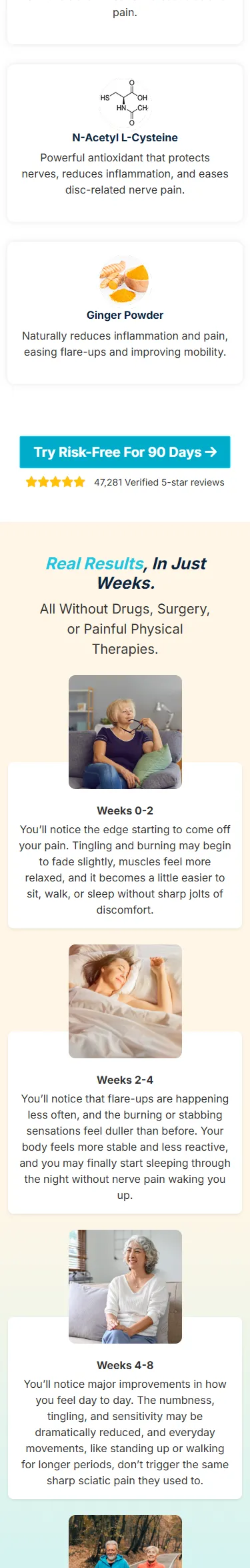 “If you deal with nerve pain, you know how draining it can be. I started Sciaticyl™ without huge expectations—but within days, I could feel a difference. The pain started fading, and I kept improving each week. I’m so thankful to have found something that actually works—without side effects.”